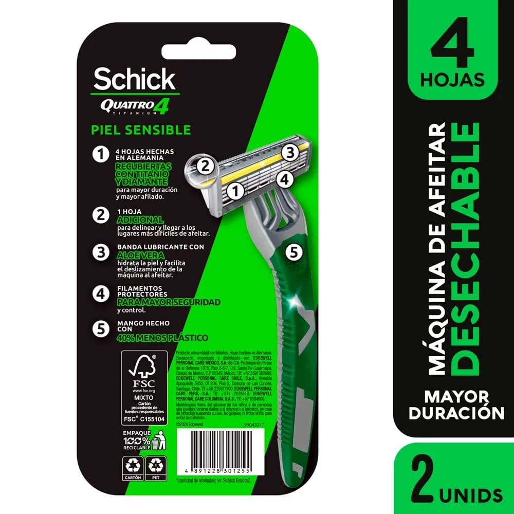 Máquina de Afeitar SCHICK Quattro Titanium 4 Paquete 2un