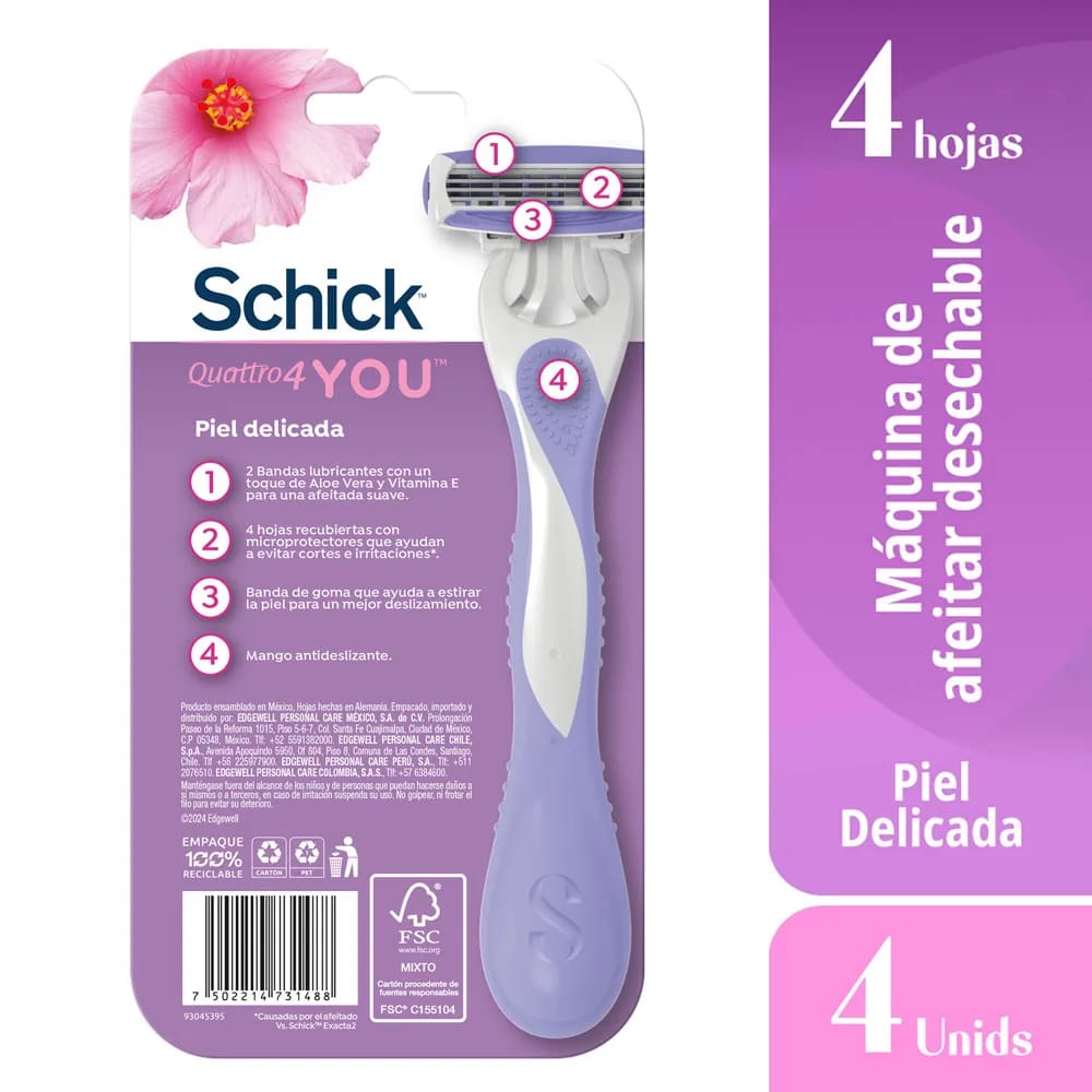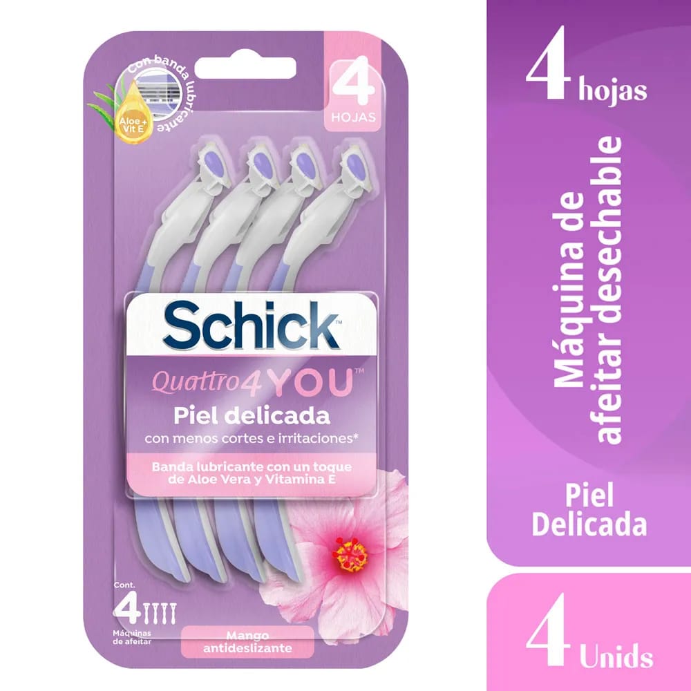 Máquina de Afeitar SCHICK Quattro You Piel Delicada Paquete 4un