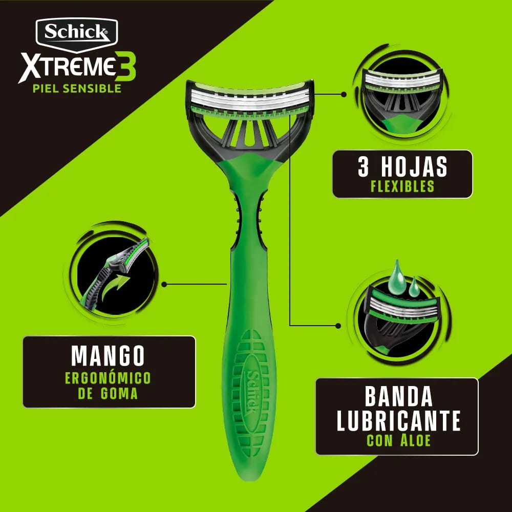 Máquina de Afeitar SCHICK Xtreme 3 Piel Sensible Paquete 2un