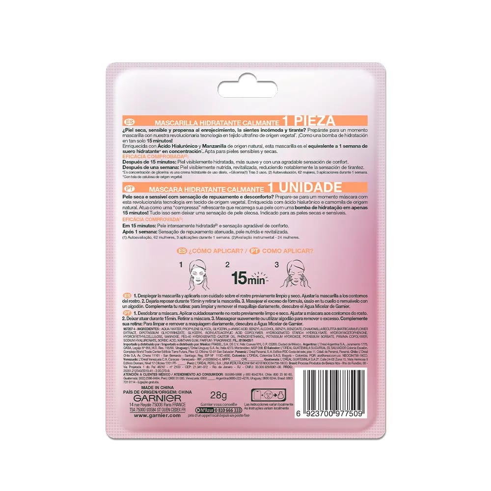 Mascarilla Facial en Tela GARNIER Calmante Sobre 1un