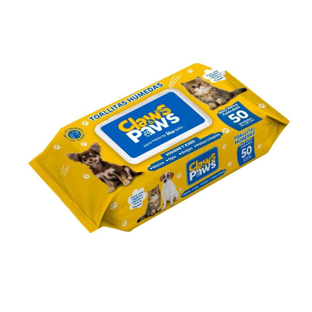 Toallas Húmedas para Mascota CLAWS & PAWSAloe Vera y Caléndula Paquete 50un