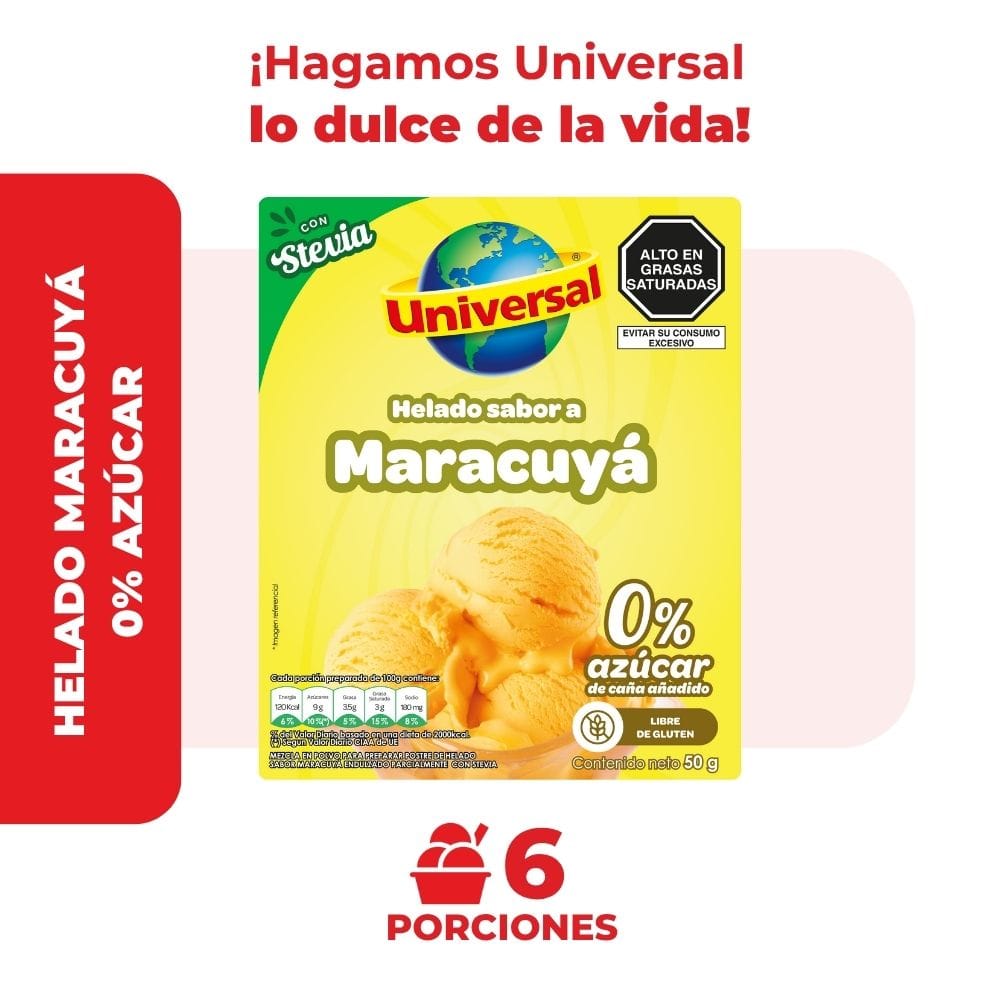 Mezcla en Polvo para Helado Diet UNIVERSAL Maracuyá Caja 50g