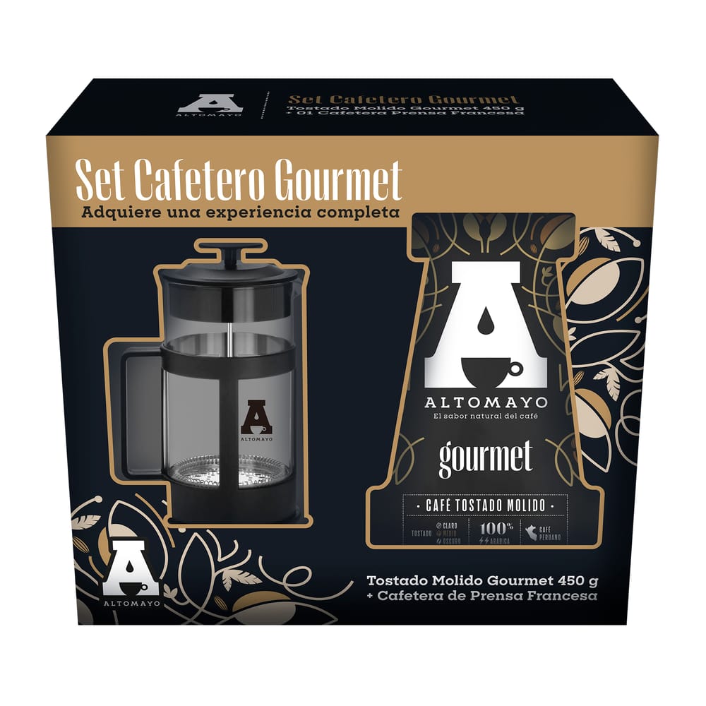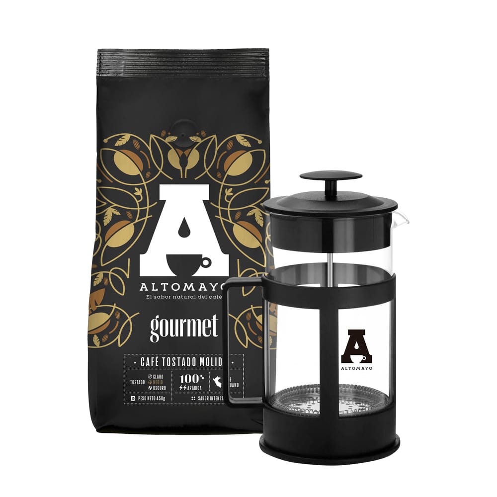 Pack ALTOMAYO Café Molido Gourmet Bolsa 450g + Cafetera Prensa Francesa