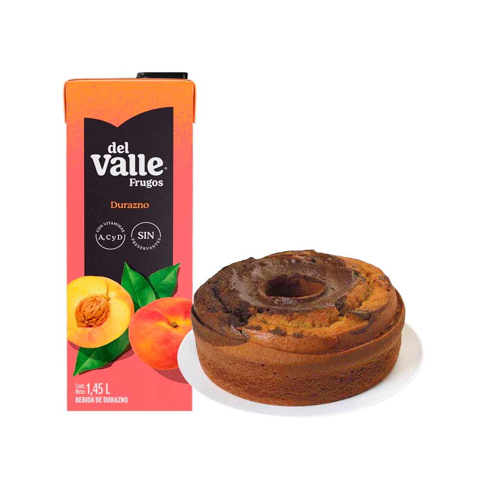 Pack Keke Redondo Marmoleado 1un + Bebida FRUGOS Sabor a Durazno Caja 1.45L