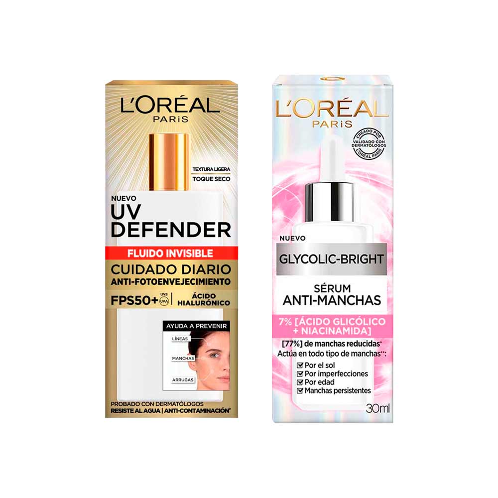 Pack L'ORÉAL Bloqueador UV Defender Fluido Invisible FPS50 40g + Serum Anti-manchas Ácido Glicólico 30ml