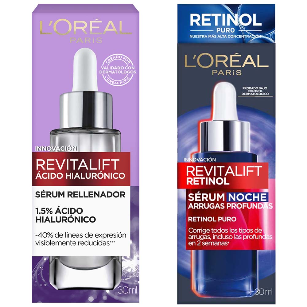 Pack L'Oréal Serum Hialurónico Revitalift 30ml + Serum Noche Revitalift Retinol Anti Arrugas 30ml