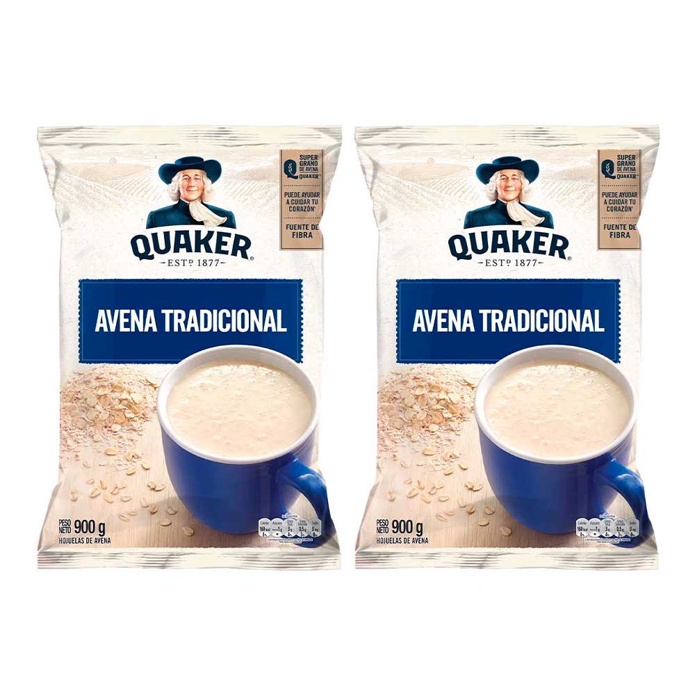 Pack Avena QUAKER Tradicional Bolsa 900g x2un