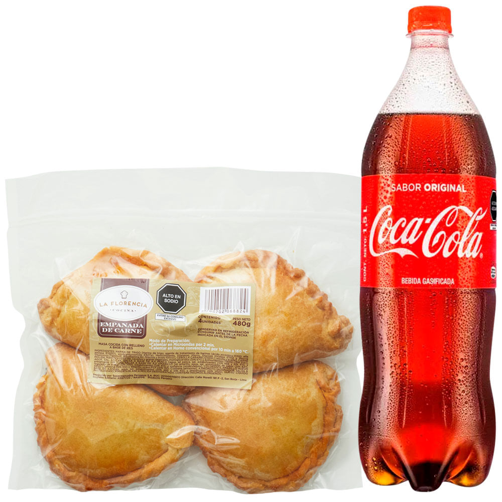Pack Empanada de Carne Paquete 4un + Gaseosa COCA COLA Botella 1.5L