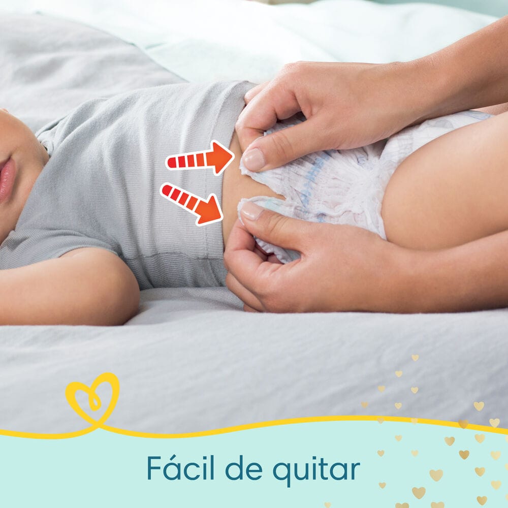 Fácil de poner, fácil de quitar y fácil de botar. Cuenta con una citura elástica 360 y protege hasta por 12 horas* a tu bebé.