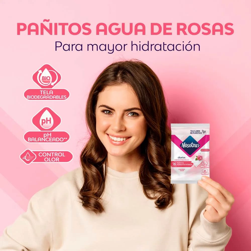 Pañitos NOSOTRAS Agua de Rosas Paquete 16un