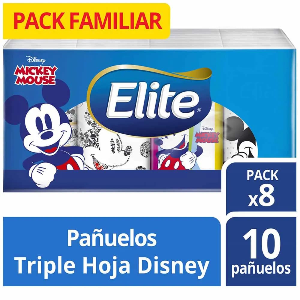 Pañuelo de Papel ELITE Disney Triple Hoja Paquete 8un
