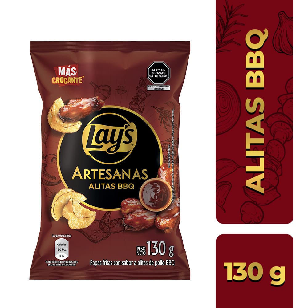 Papas Fritas LAY'S Artesanas Alitas BBQ Bolsa 130g
