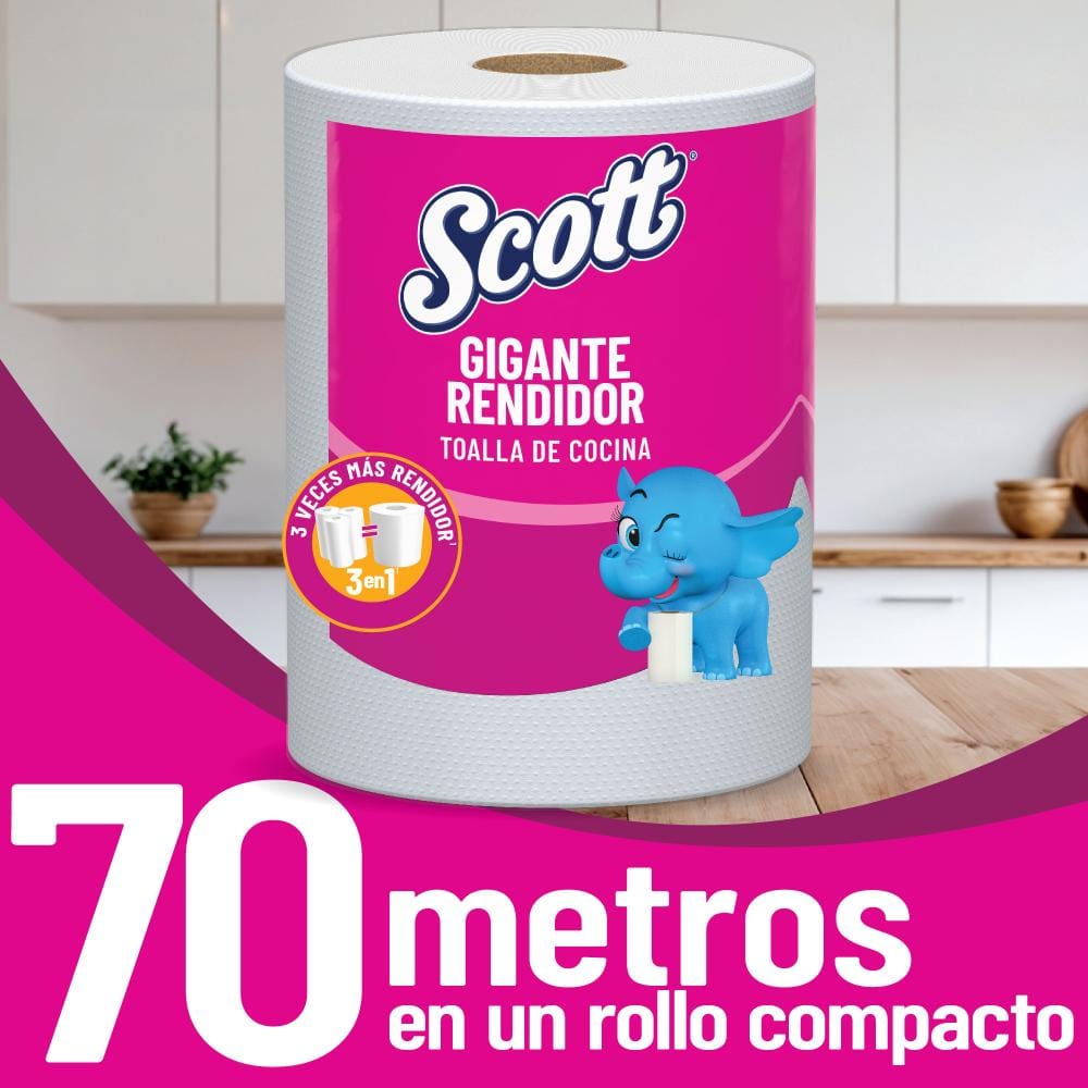 Toalla de Cocina Desechable SCOTT Multiuso 70 metros - 500 Hojas Paquete 1un