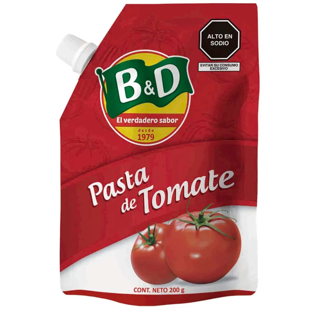 Agua, pasta de tomate, extensor (azúcares, sustancias inertes (SIN 1400), almidones nativos, sal, estabilizadores (SIN 407, SIN 415) y sustancia conservadora (SIN 202)), sustancias conservadoras (SIN 211, SIN 202) y colorante (SIN 129).