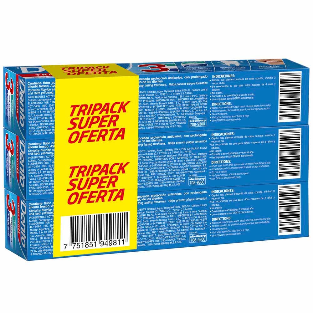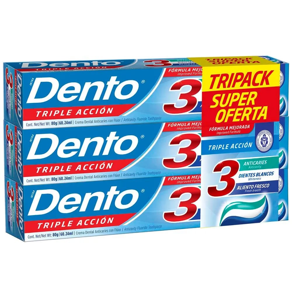 Pasta Dental DENTO Triple Acción Tubo 80g Caja 3un