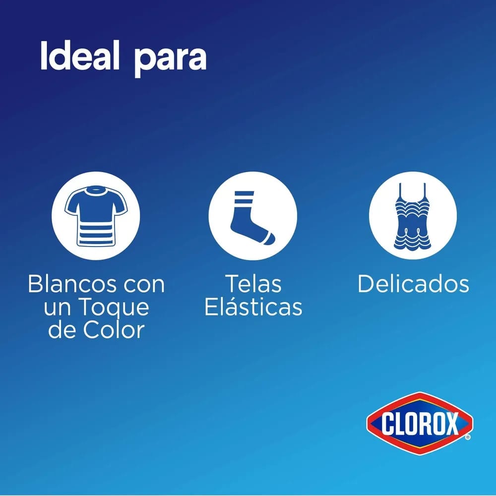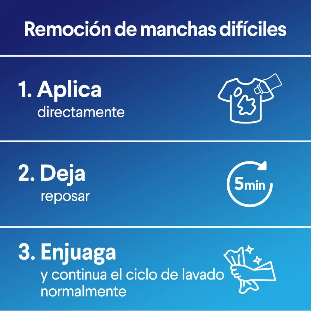 Remueve manchas de: blancos con un toque de color, telas domesticas y delicados