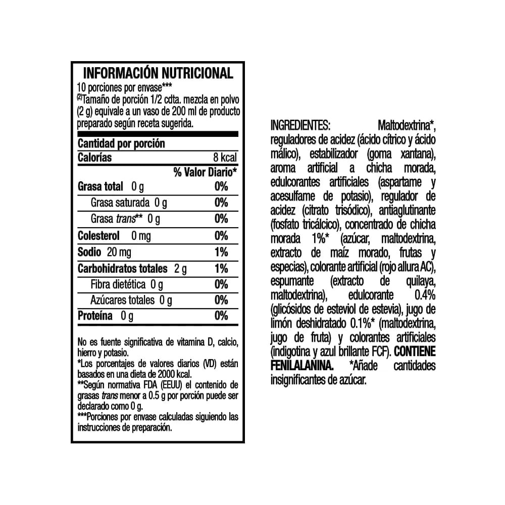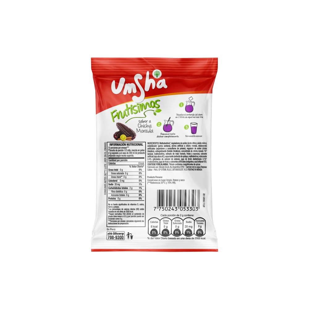 Refresco UMSHA Frutisimos Chicha Morada Bolsa 20g