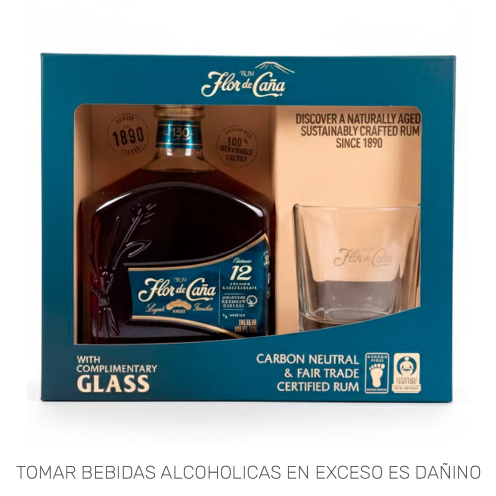 Ron FLOR DE CAÑA 12 Años Botella 750ml + Vaso