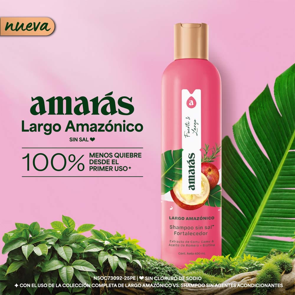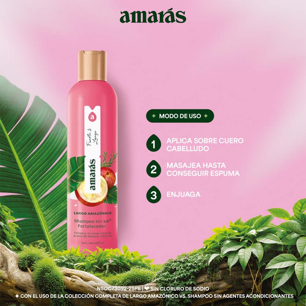 Shampoo sin Sal Fortalecedor AMARÁS Largo Amazónico Pote 400ml