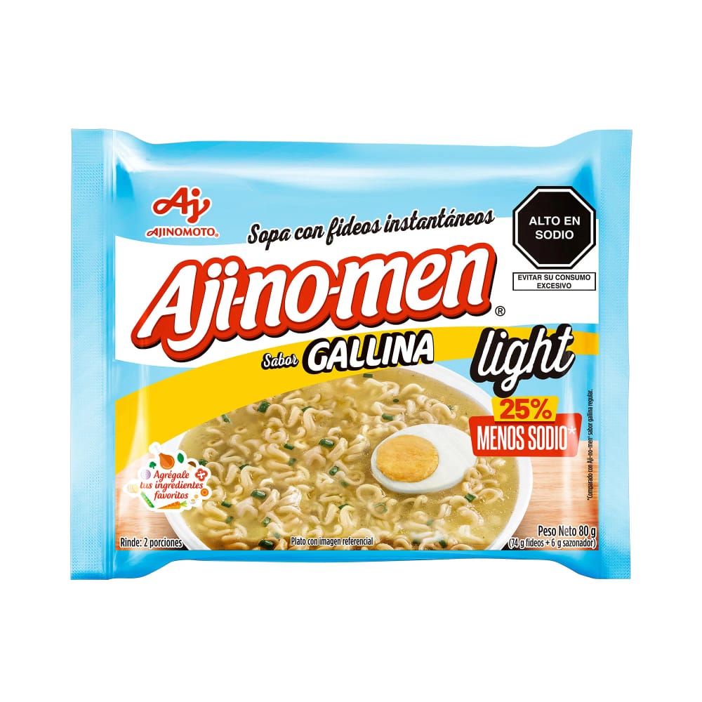 Sopa Instantanea con fideos Aji-no-men(R) Sabor Gallina Light Bolsa x 80g