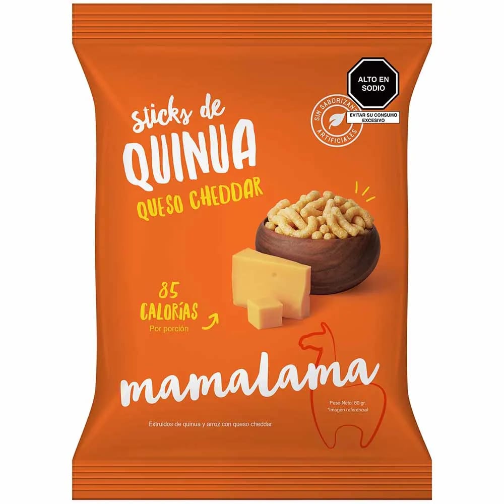 Sticks de Quinua MAMALAMA Queso Cheddar 100% Naturales Bolsa 80g