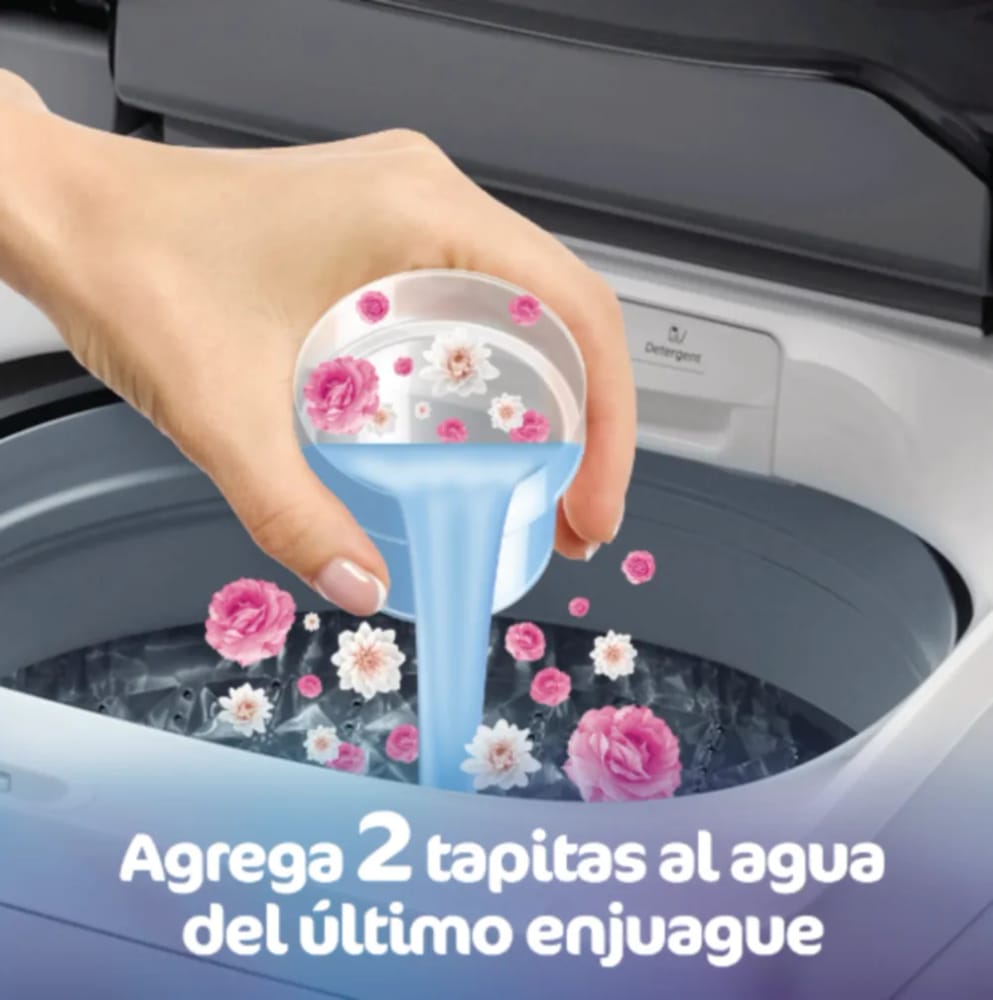 Deja la ropa con una fragancia intensa que perdura, protege las fibras de la ropa manteniendo los colores y deja una sensación de suavidad en las prendas.