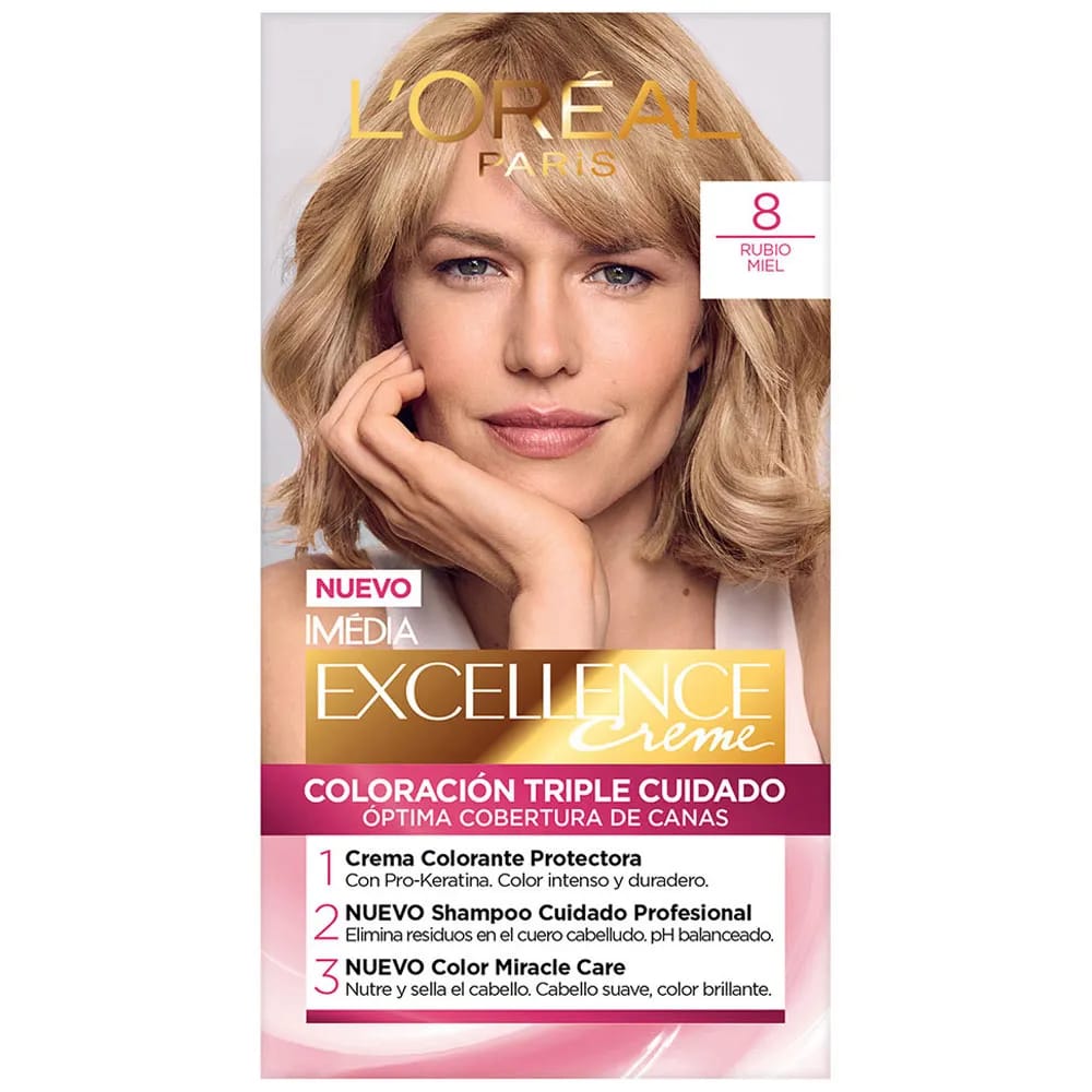 Tinte para Cabello EXCELLENCE Creme 8 Rubio Miel Caja 1un