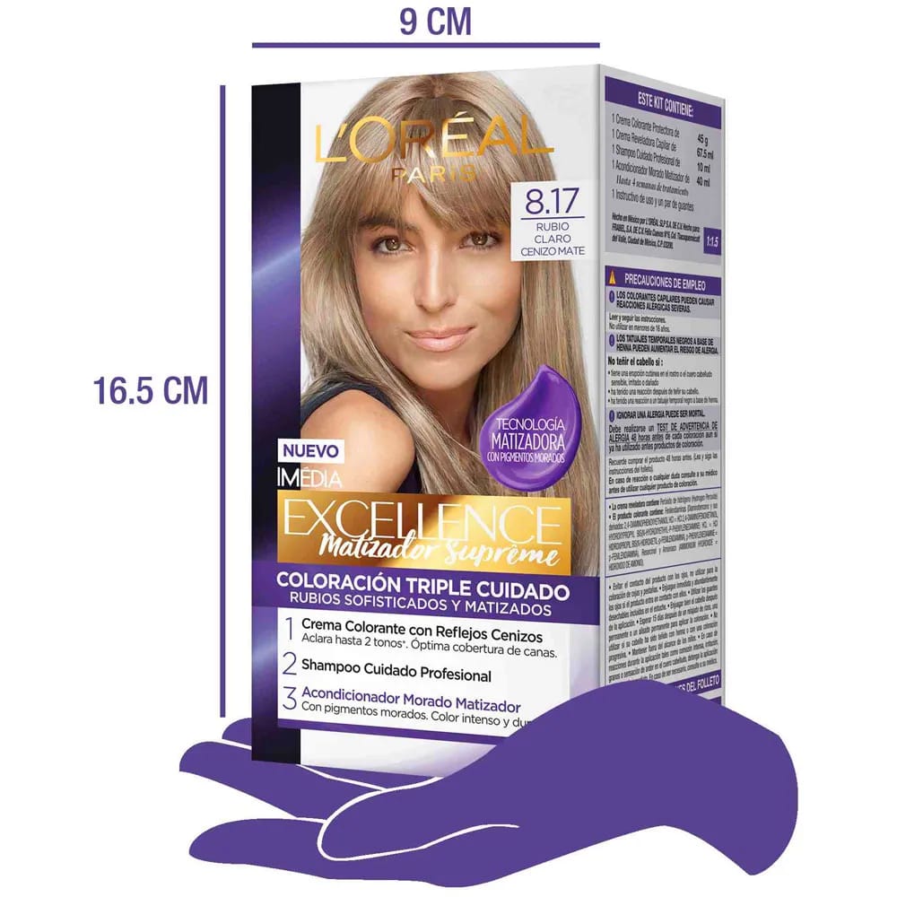 Tinte para Cabello EXCELLENCE Mujer 8.17 Rubio Claro Cenizo Mate Caja 1un