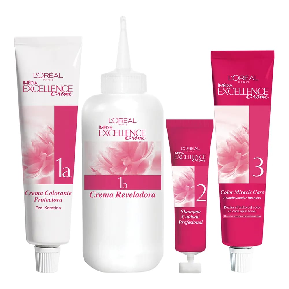 1 Crema colorante capilar de 45g. 1 crema reveladora capilar de 67. 5ml. 1 Tratamiento capilar. Acondicionador de 47ml. 1 Sérum protector tratamiento capilar 10ml. 1 peine aplicador. 1 instructivo de uso. 1 par de guantes.
