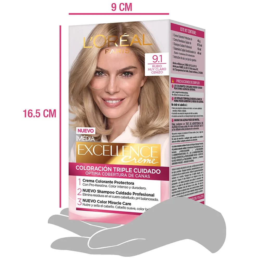 Tinte para Cabello L'ORÉAL Excellence 9.1 Rubio Claro Cenizo Caja 1un