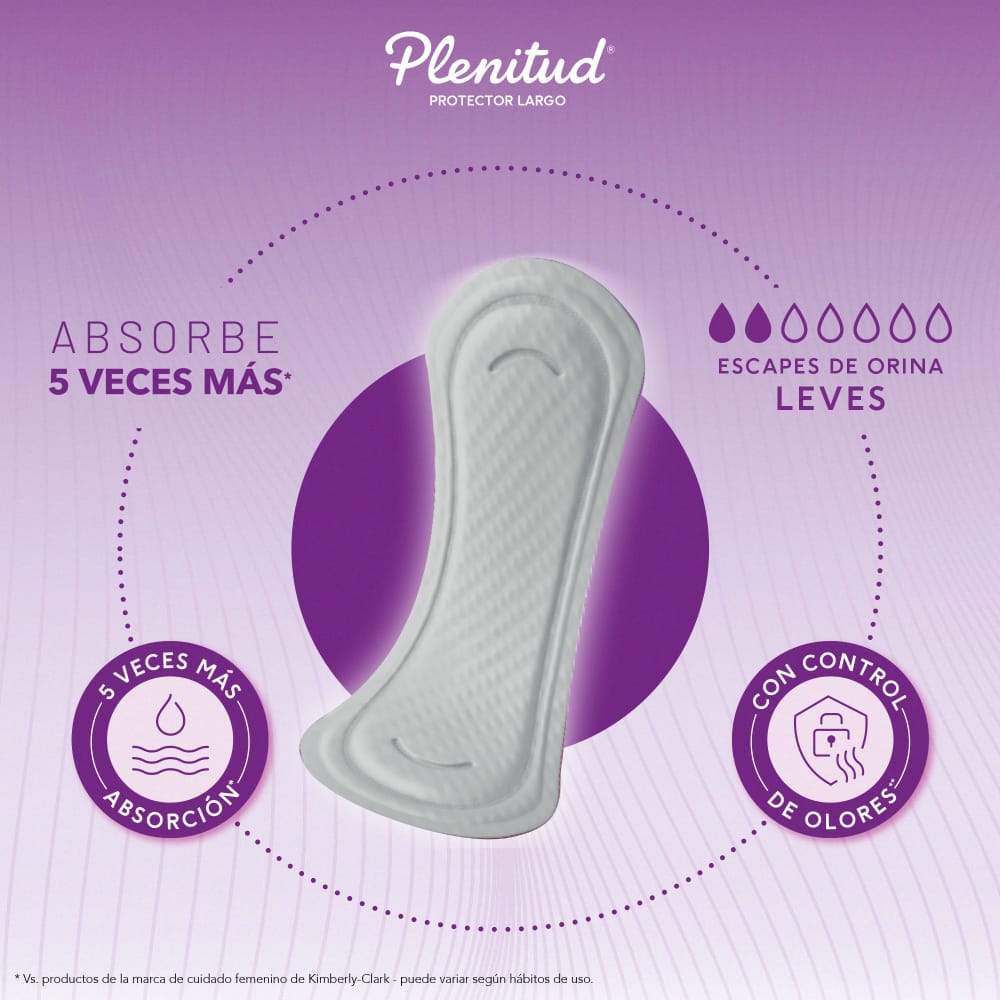 Protector Diario Largo PLENITUD para Escapes de Orina Leves Absorbe 5 Veces Más, Paquete 24un
