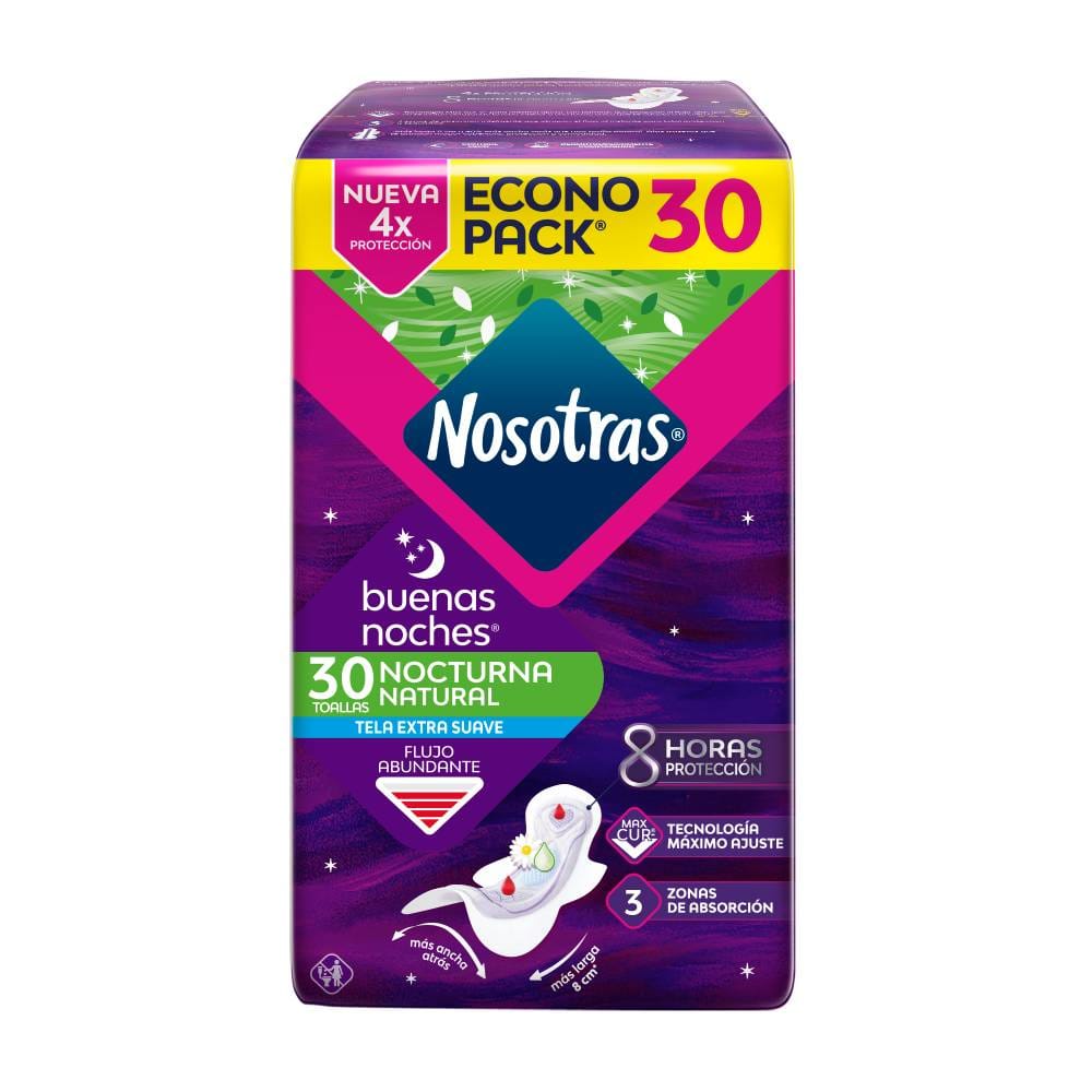 Toallas Higiénicas NOSOTRAS Buenas Noches Nocturna Natural Paquete 30un