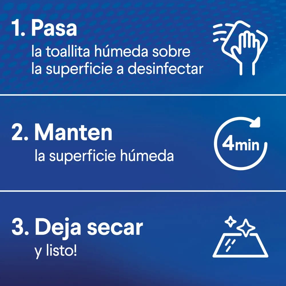 Paños desinfectantes y multisuperificies que eliminan el 99.9% de Virus y Bacterias.