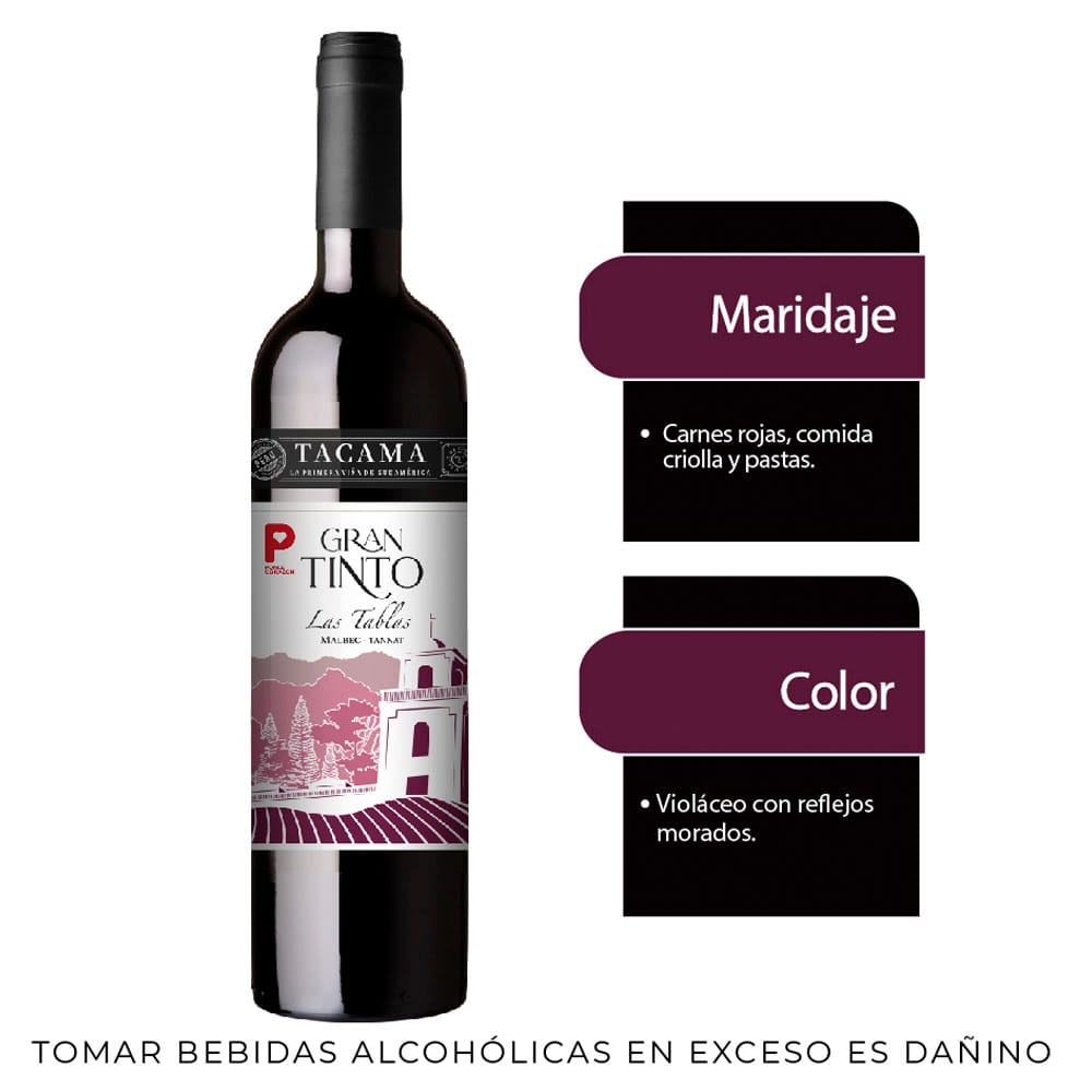 Vino TACAMA Gran Tinto Malbec Petit Verdot Tannat Botella 750ml