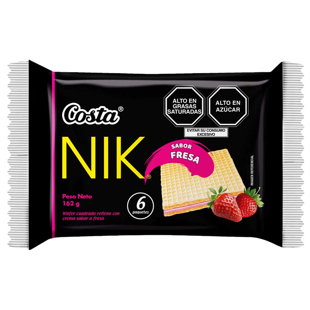 Wafer Cuadrado NIK Relleno con Crema Sabor a Fresa Paquete 6un